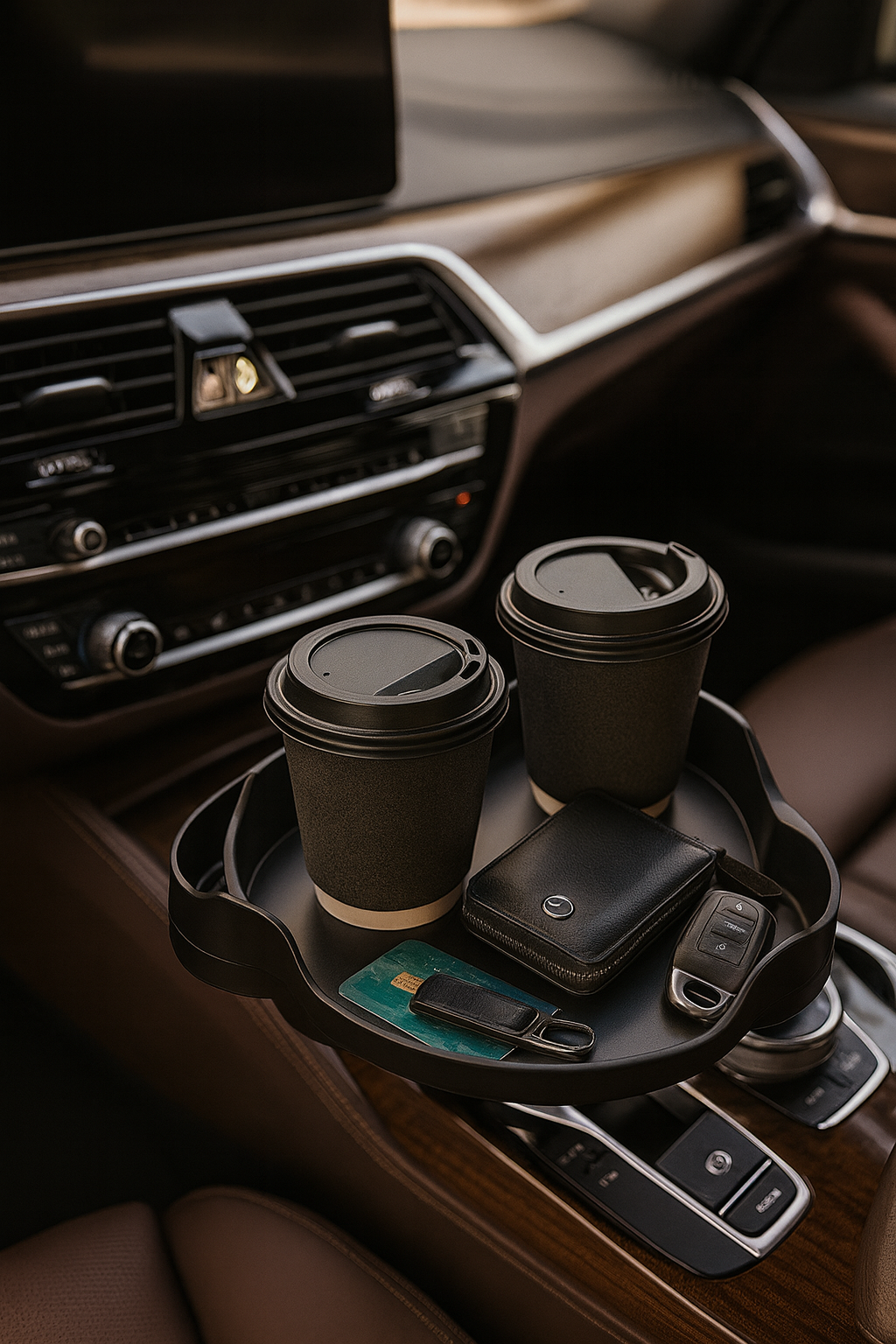 حامل أكواب مزدوج مع صينية طعام للسيارة – يخليك تستمتع بمشاويرك بدون فوضى!