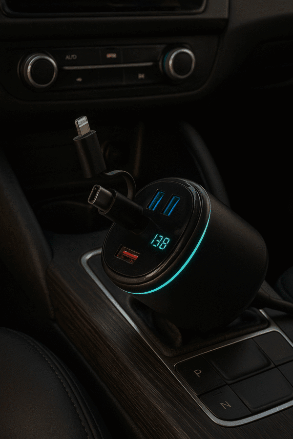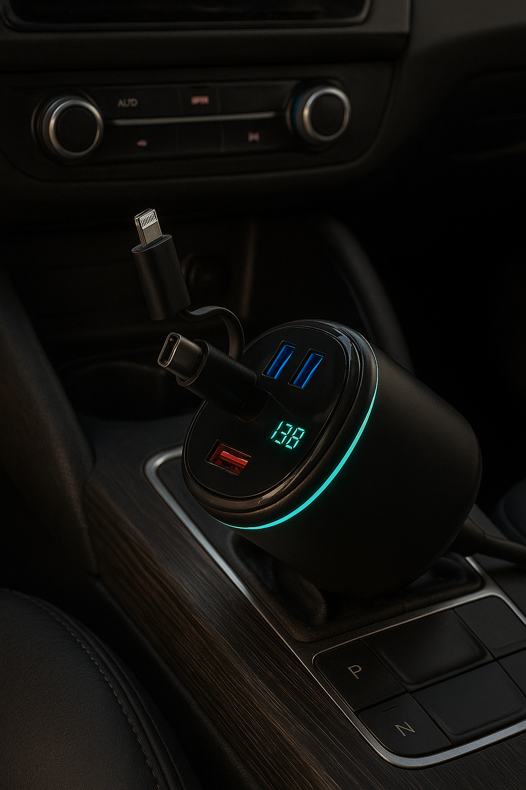 ليش تحتاجه؟ عشان في السيارة كل واحد له جواله — الشاحن هذا يخلّيك تشحنين أكثر من جهاز بسرعة وتنظّم الكابلات بذكاء، لا فوضى ولا مزاحمة! 🔌✨