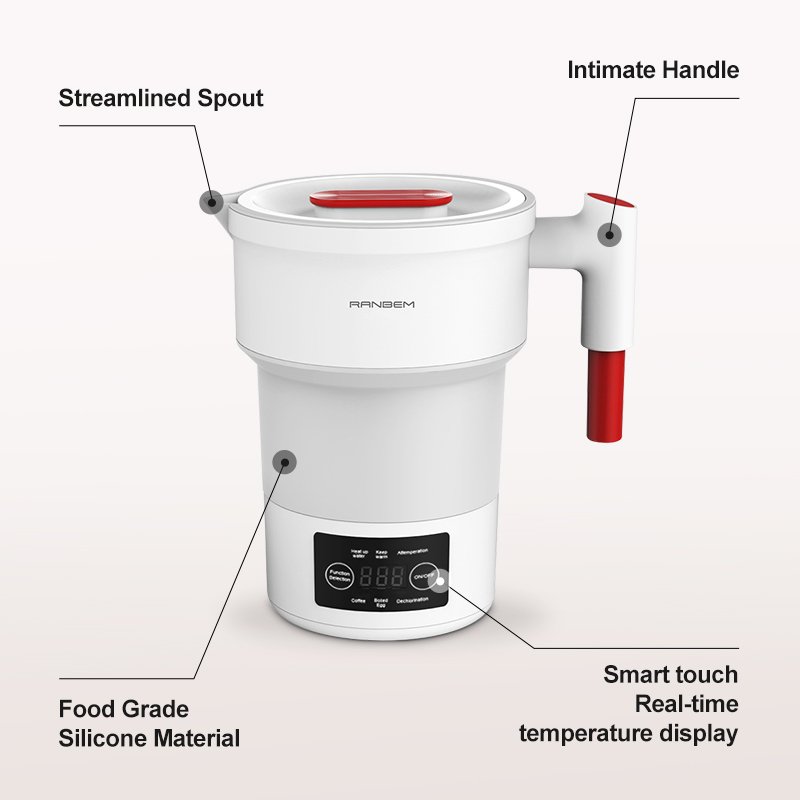 غلاية كهربائية ذكية بتصميم قابل للطي، مثالية للسفر، المكتب، والرحلات. مصنوعة من سيليكون غذائي آمن، مزودة بشاشة لمس لعرض درجة الحرارة الفعلية، وتغلي الماء خلال 3 دقائق فقط. حل عملي لمن يبحث عن الأداء القوي مع أقل مساحة تخزين.