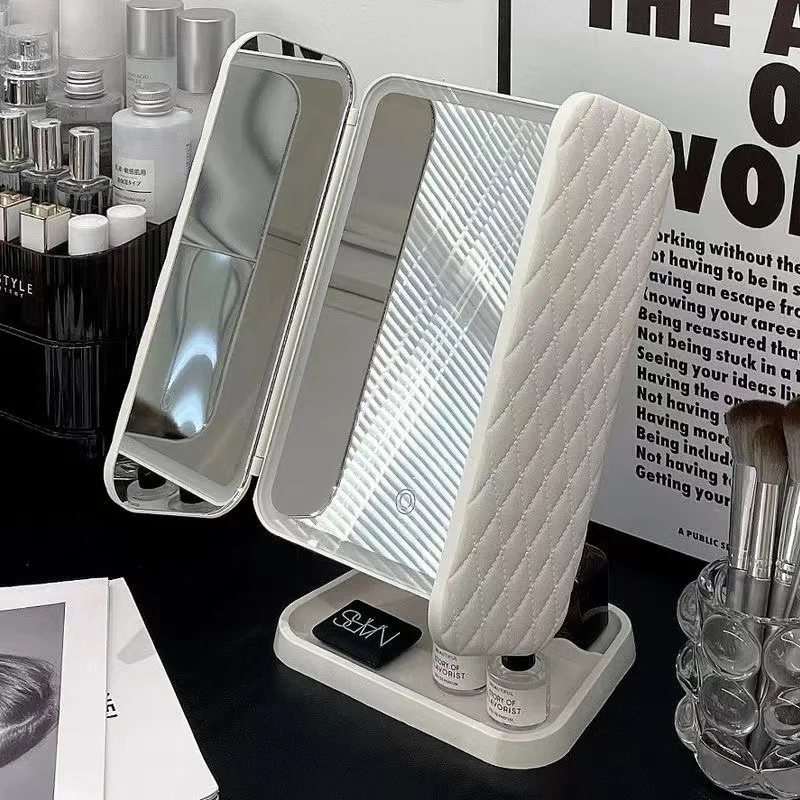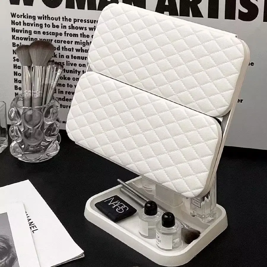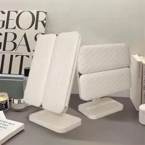 • مرآة مكياج أنيقة بآلية فتح ذكية تصميم عملي يجمع بين المرآة والمنظم في قطعة واحدة فاخرة.